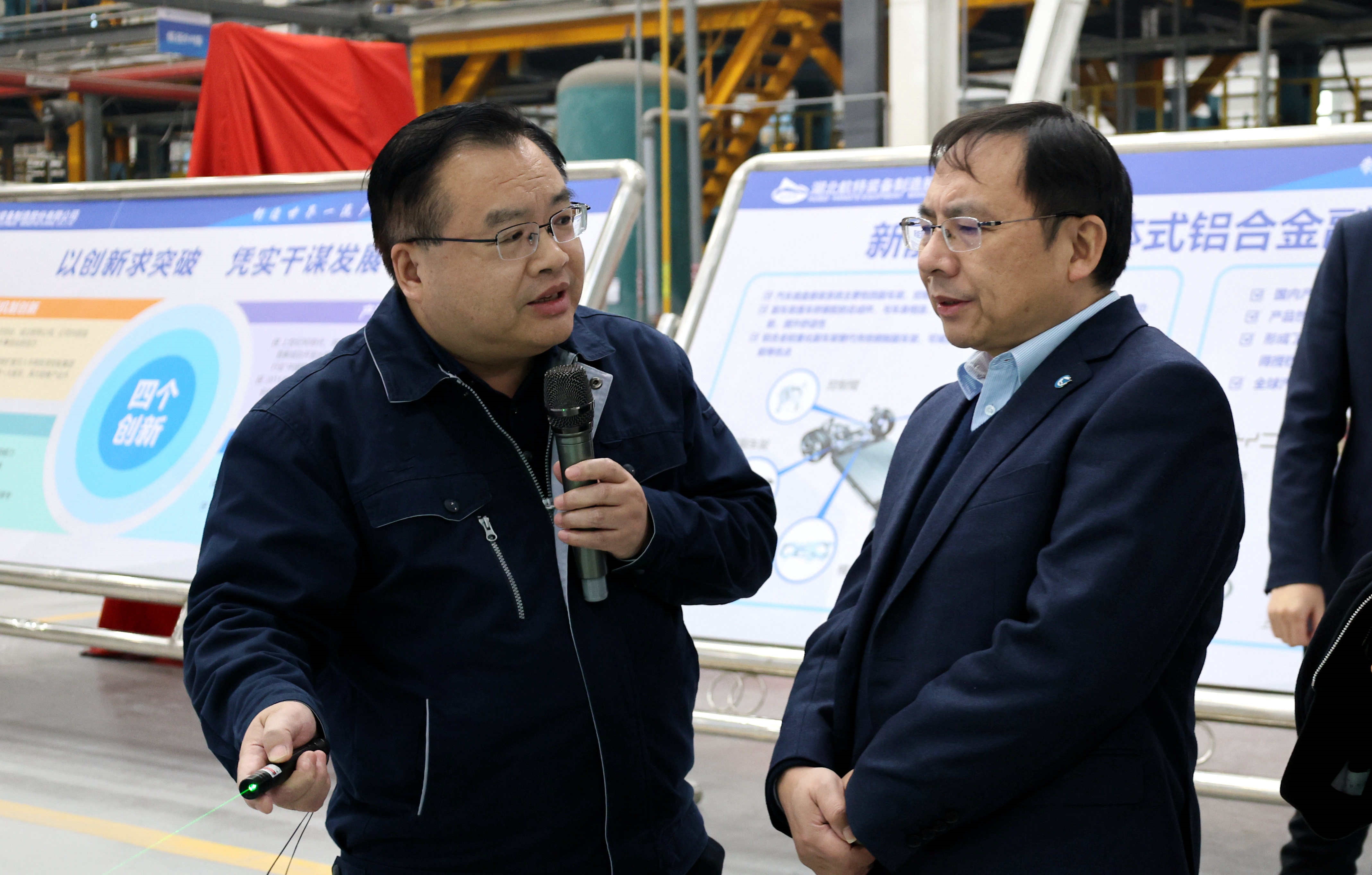 在公司總經(jīng)理陳陽陵,副總經(jīng)理陳云陪同下,李磊一行參觀了公司輕量化底盤生產(chǎn)基地,實(shí)地了解了公司主要產(chǎn)品和客戶市場情況。座談中,陳陽陵向李磊詳細(xì)介紹了航特裝備各產(chǎn)業(yè)板塊發(fā)展情況以及未來發(fā)展規(guī)劃。