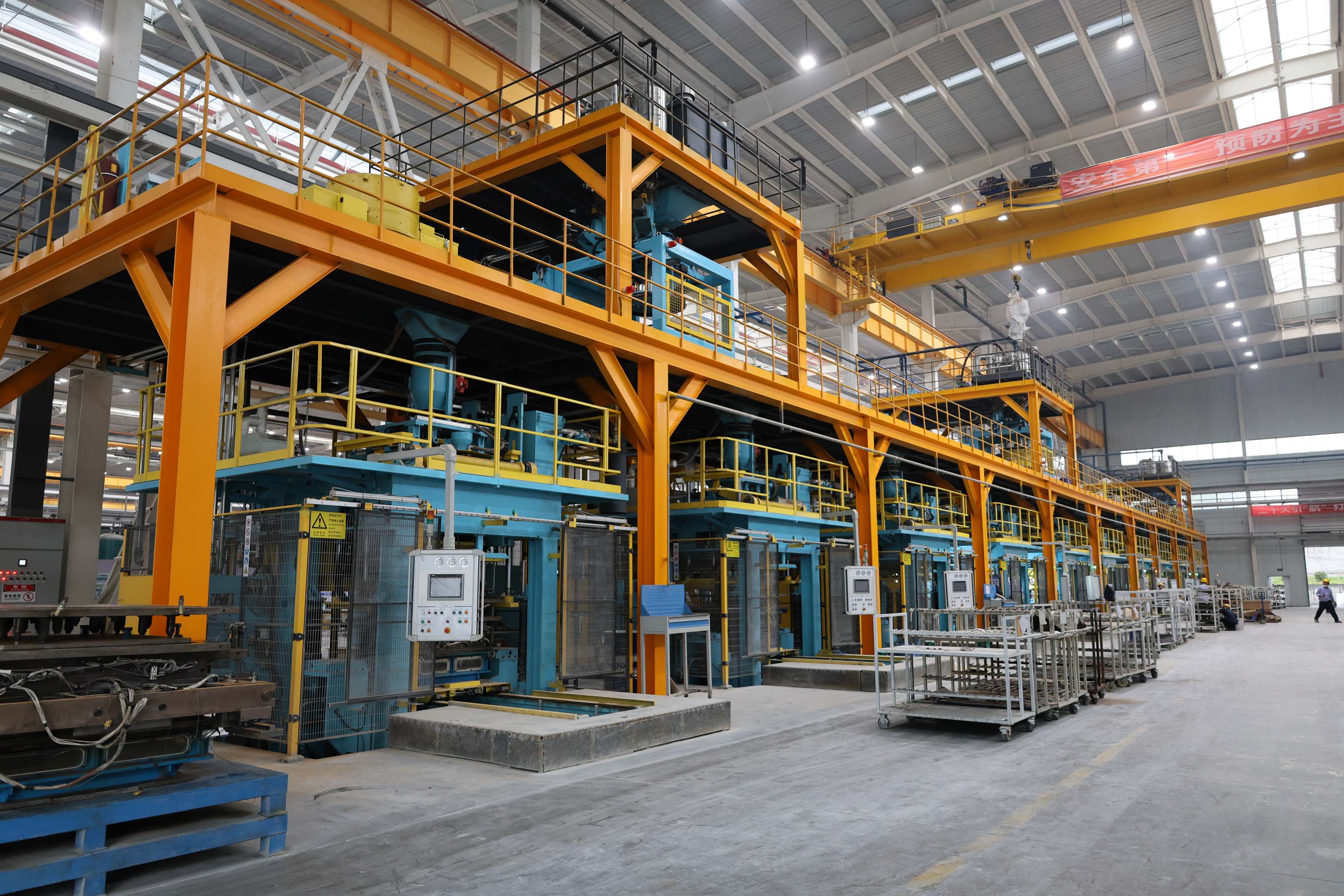 整個生產過程采用信息化追溯管理系統(tǒng),產品通過二維碼對全過程進行信息跟蹤并記錄。同時還擁有多條各類自動化生產線(如澆注自動化生產線、后處理自動化生產線、總裝自動化生產線等)。其中澆注線具備自動澆注、取件、打碼功能;后處理線可進行自動化冷卻、振砂、切邊切澆冒口等作業(yè);探傷(ADR)具備自動識別鑄件缺陷功能,提升了檢測效率。